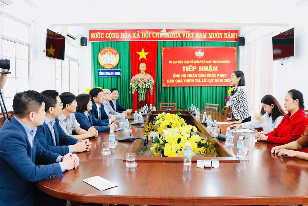 Phát biểu tại buổi tiếp nhận, Bà Trần Thu Mai – Phó Chủ tịch thường trực Ủy ban Mặt trận Tổ quốc Việt Nam tỉnh Khánh Hòa trân trọng cảm ơn tình cảm, sự quan tâm, hỗ trợ của lãnh đạo, cán bộ nhân viên PVcomBank dành cho Nhân dân tỉnh Khánh Hòa. Bà Trần Thu Mai khẳng định đây là sự hỗ trợ kịp thời, thiết thực trong thời điểm địa phương đang tập trung mọi nguồn lực để khắc phục hậu quả thiên tai. Ủy ban Mặt trận Tổ quốc Việt Nam tỉnh sẽ kịp thời phân bổ nguồn hỗ trợ đến các hộ gia đình bị thiệt hại, giúp người dân sớm ổn định cuộc sống, khôi phục sản xuất, kinh doanh sau mưa lũ.