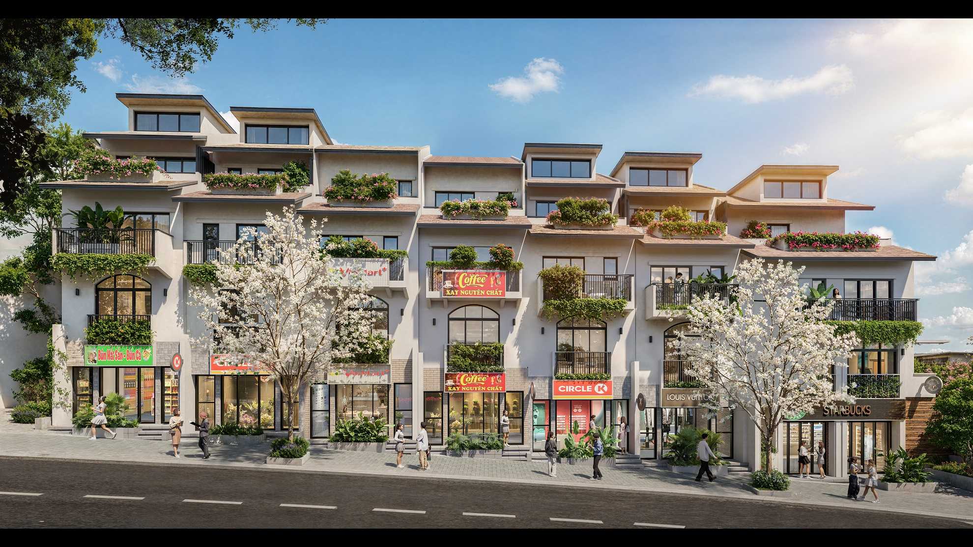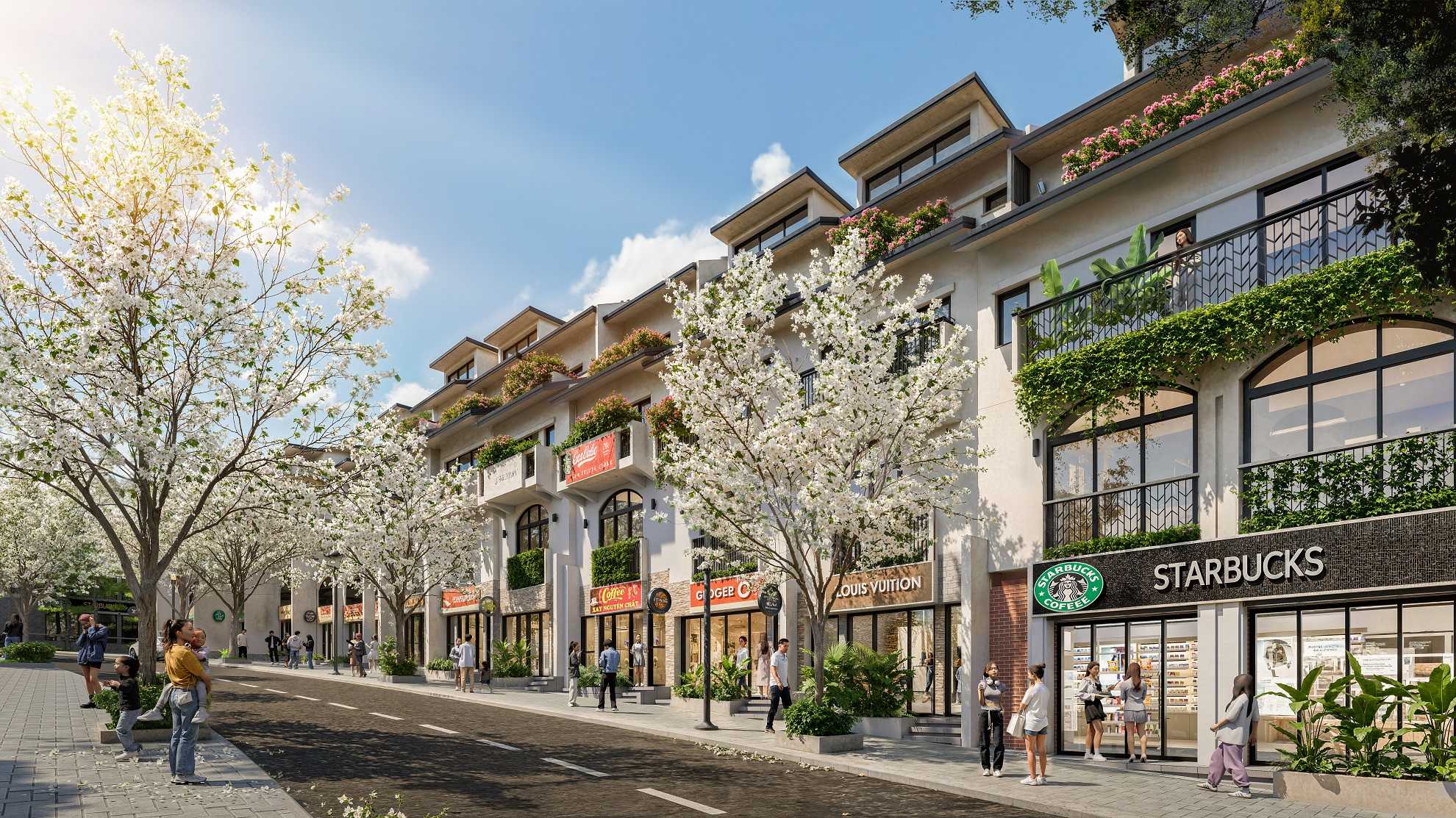 - Tiện ích nội khu: Cà phê, nhà sinh hoạt cộng đồng, bể bơi, sân chơi, công viên trung tâm, nhà nghỉ chân/dịch vụ công cộng…