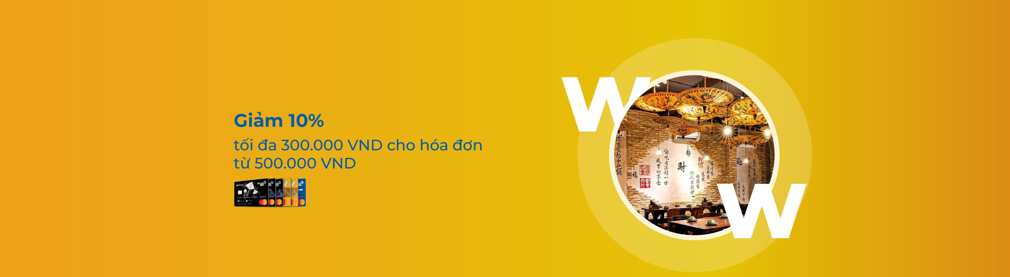 - Giảm 10% tối đa 300.000 VND cho hóa đơn từ 500.000 VND (không gồm VAT & phí).