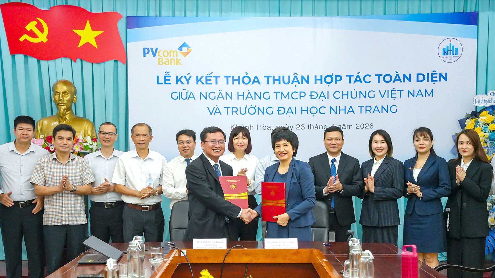 Ngân hàng TMCP Đại Chúng Việt Nam (PVcomBank) vừa ký kết thỏa thuận hợp tác với Trường Đại học Nha Trang, đánh dấu bước tiến quan trọng trong chiến lược mở rộng hệ sinh thái đối tác và khẳng định cam kết đồng hành cùng ngành giáo dục theo định hướng phát triển bền vững.