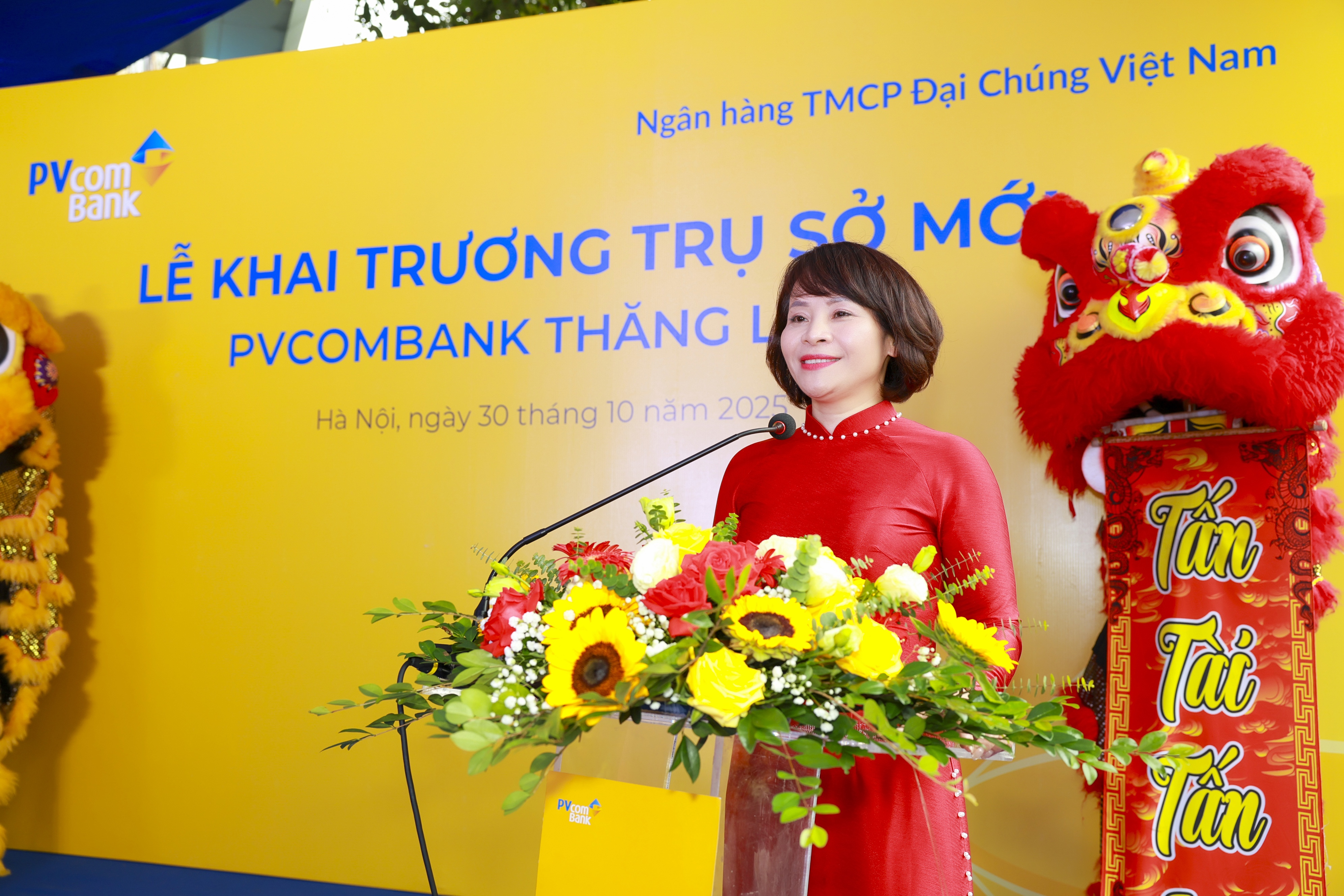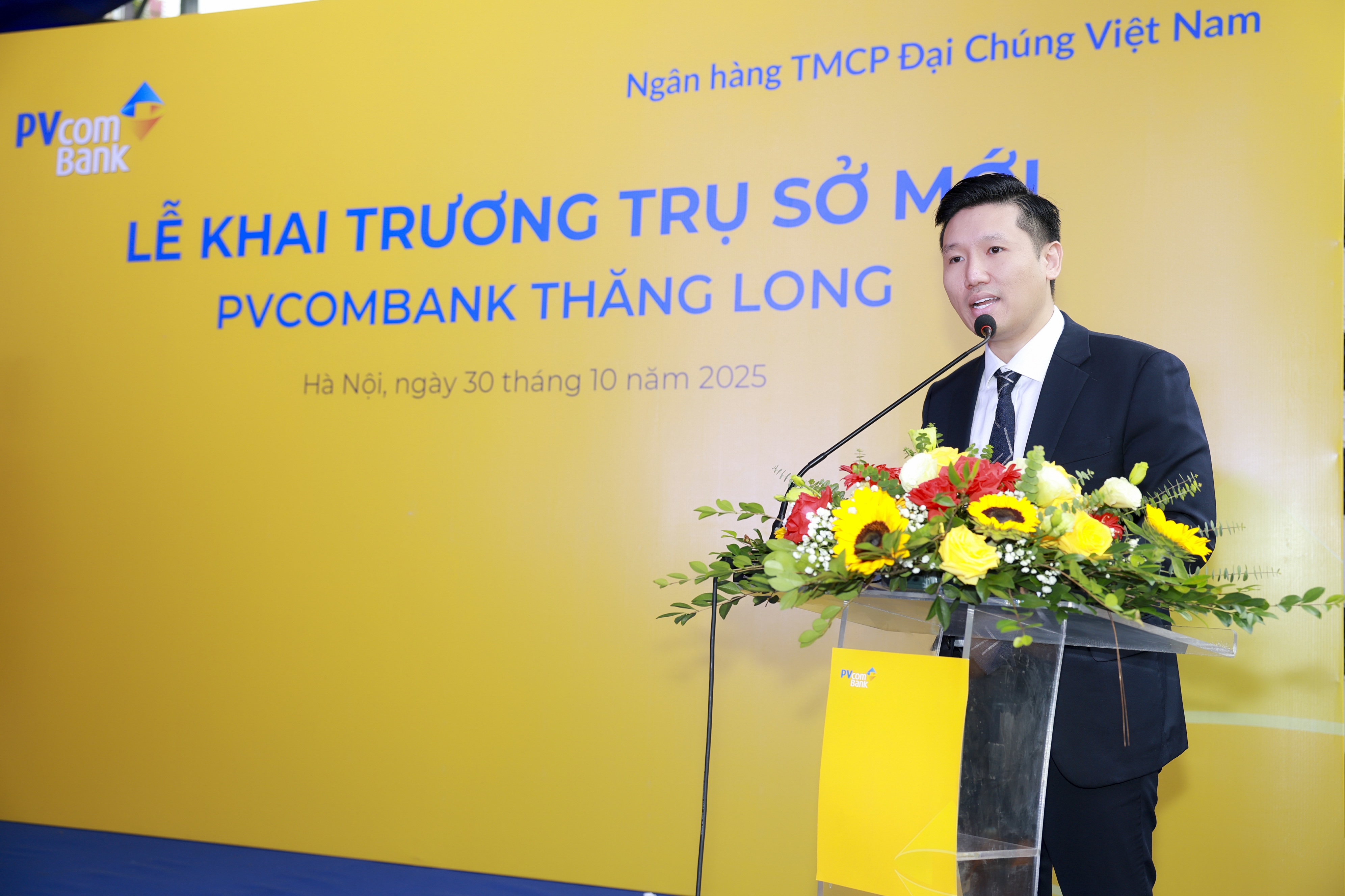 Phát biểu tại buổi lễ, ông Nguyễn Quang Trung - Phó Giám đốc Khối Khách hàng cá nhân PVcomBank nhấn mạnh: “Sau nhiều năm hoạt động tại địa chỉ 139 Cầu Giấy, PVcomBank Thăng Long đã trở thành một địa chỉ giao dịch tin cậy, nơi gắn kết niềm tin của hàng nghìn khách hàng cá nhân và doanh nghiệp. Việc chuyển về trụ sở mới tại 82 Trần Thái Tông vẫn tại địa bàn phường Cầu Giấy không chỉ giúp Chi nhánh mở rộng không gian giao dịch hiện đại, mà còn thể hiện quyết tâm nâng tầm chất lượng dịch vụ, mang đến trải nghiệm tiện nghi, thân thiện và chuyên nghiệp hơn cho khách hàng”.