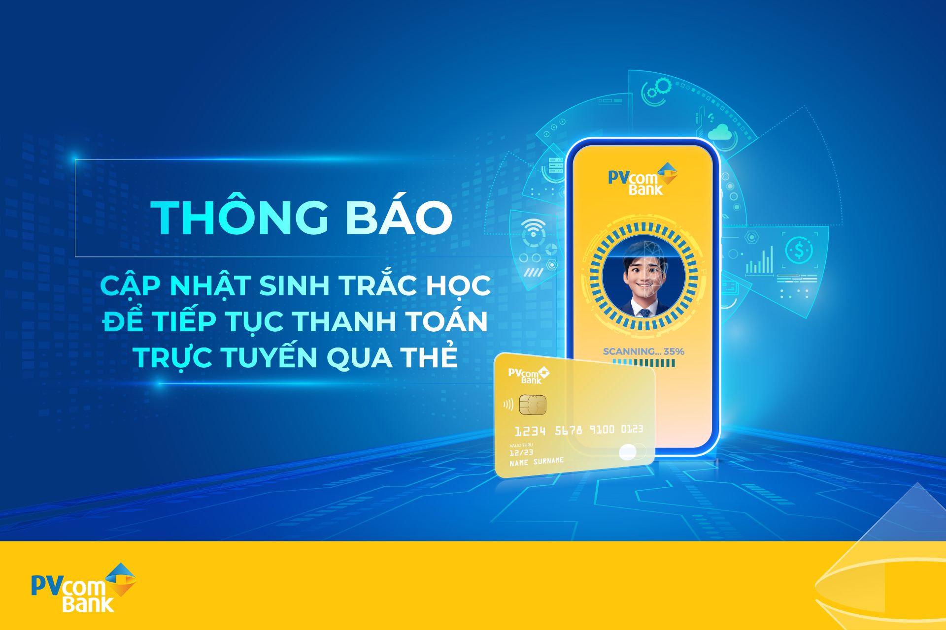 Để đảm bảo an toàn khi thực hiện các giao dịch thanh toán trực tuyến qua thẻ và đáp ứng theo thông tư 45/2025/TT-NHNN, PVcomBank trân trọng thông báo sẽ tạm ngừng các giao dịch trực tuyến qua thẻ nếu Quý khách chưa hoàn thành đối chiếu, cập nhật thông tin sinh trắc học trước ngày 05/01/2026.