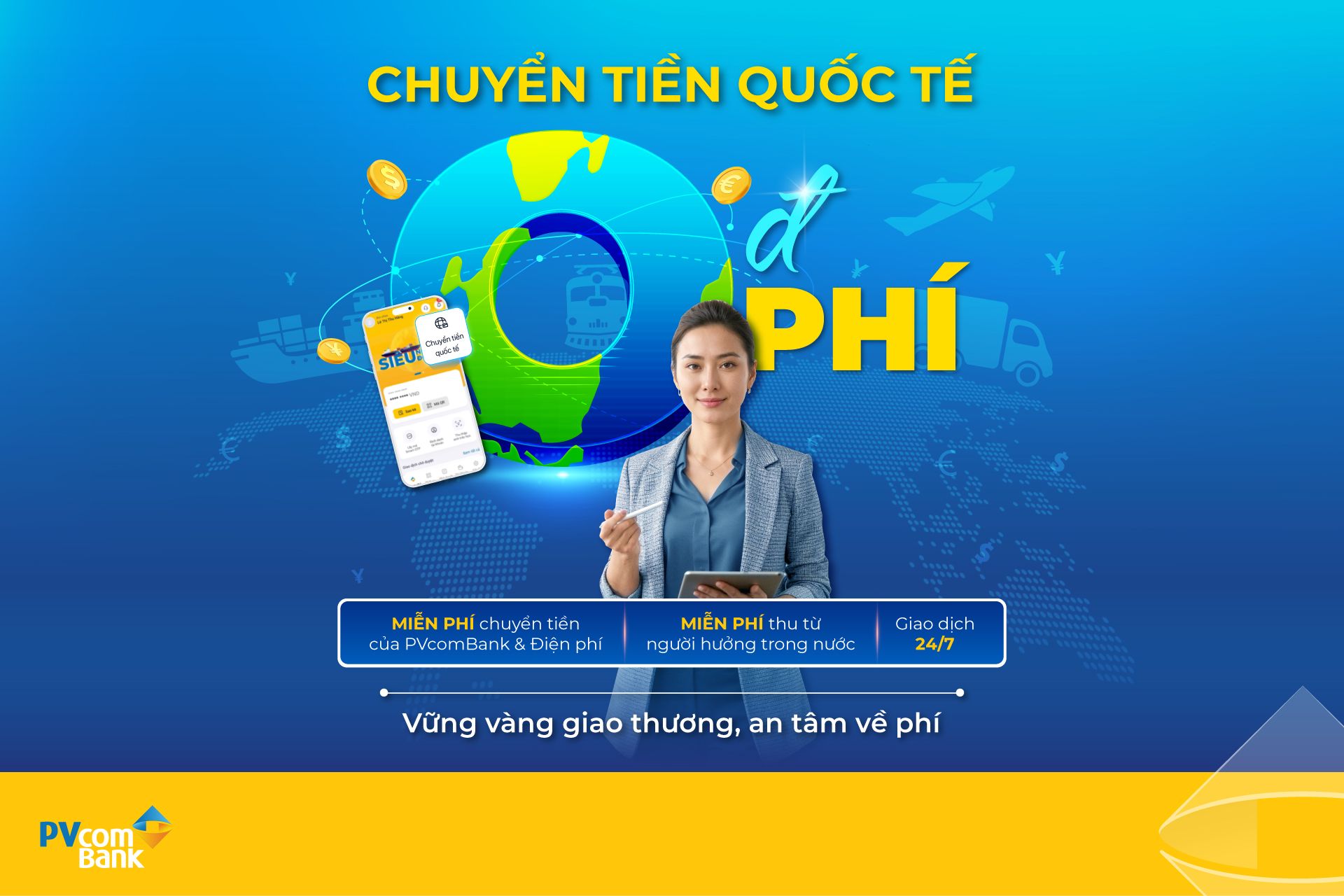 Nhằm đồng hành cùng Doanh nghiệp siêu nhỏ và Hộ Kinh doanh trên hành trình giao thương quốc tế, Ngân hàng TMCP Đại Chúng Việt Nam (PVcomBank) triển khai chương trình ưu đãi hấp dẫn: Miễn/giảm phí chuyển tiền của PVcomBank và Điện phí; Miễn phí thu tư người hưởng trong nước…